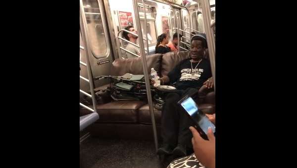 El lunes un pasajero fue capturado en un video sentado en un sofá de cuero que logró introducir dentro de un vagón ante los neoyorquinos, acostumbrados a verlo todo.